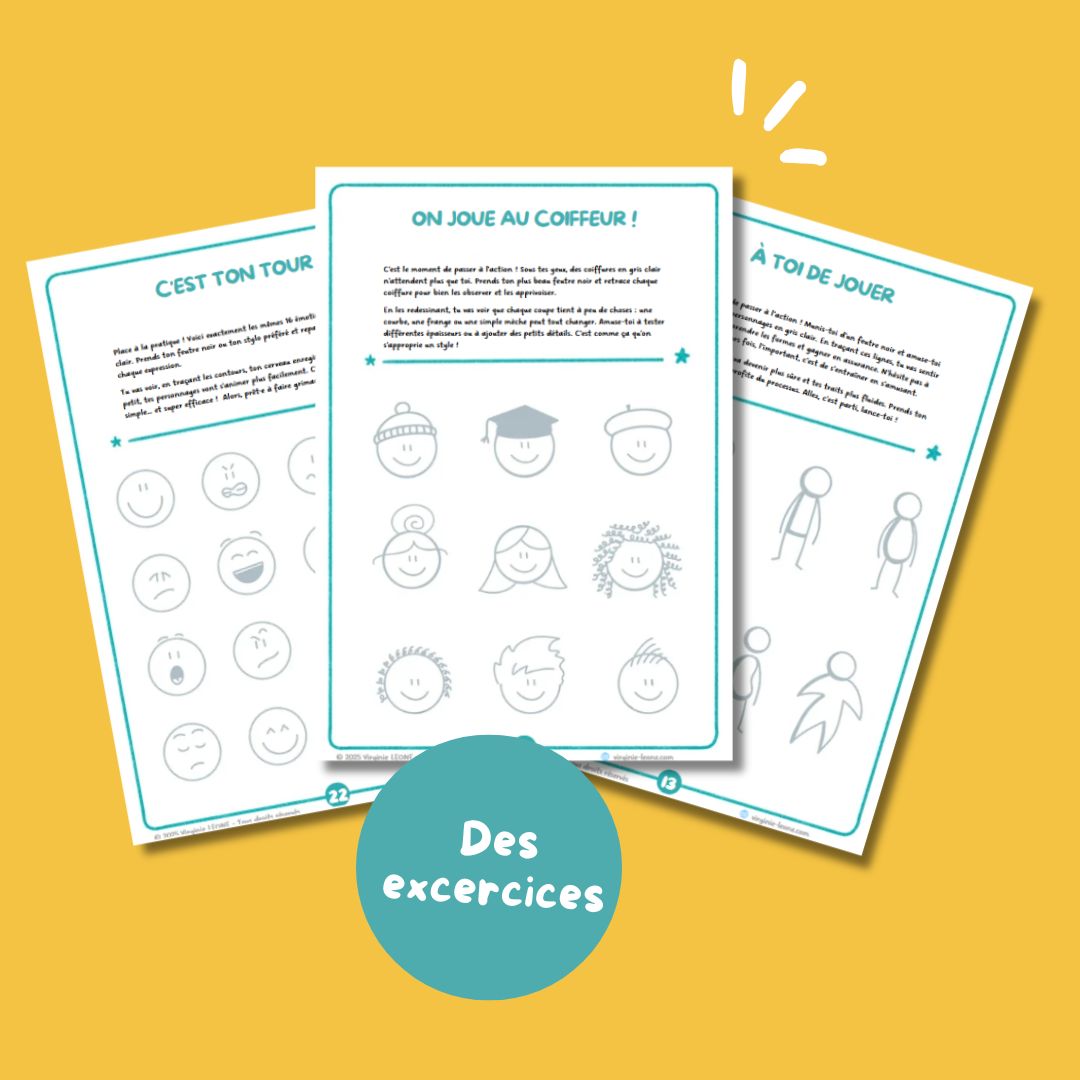 Découvre les 100 pages du "Guide du Personnage - Débutant", ton compagnon idéal pour transformer tes gribouillages en personnages vivants et expressifs !