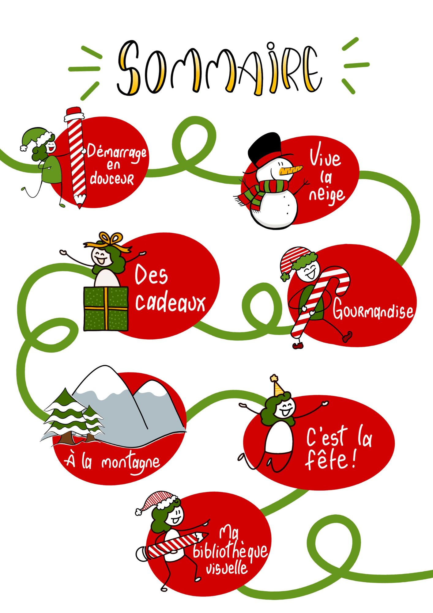 J’ai imaginé 5 thématiques pétillantes, chacune construite avec la même trame simple et ludique :